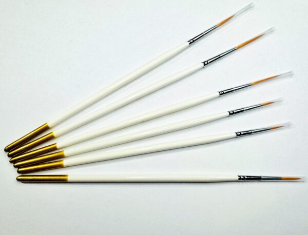 Szintetikus ecsetvégű, 6 különböző méretben – 3 hosszú és 3 rövid szörű ecset.